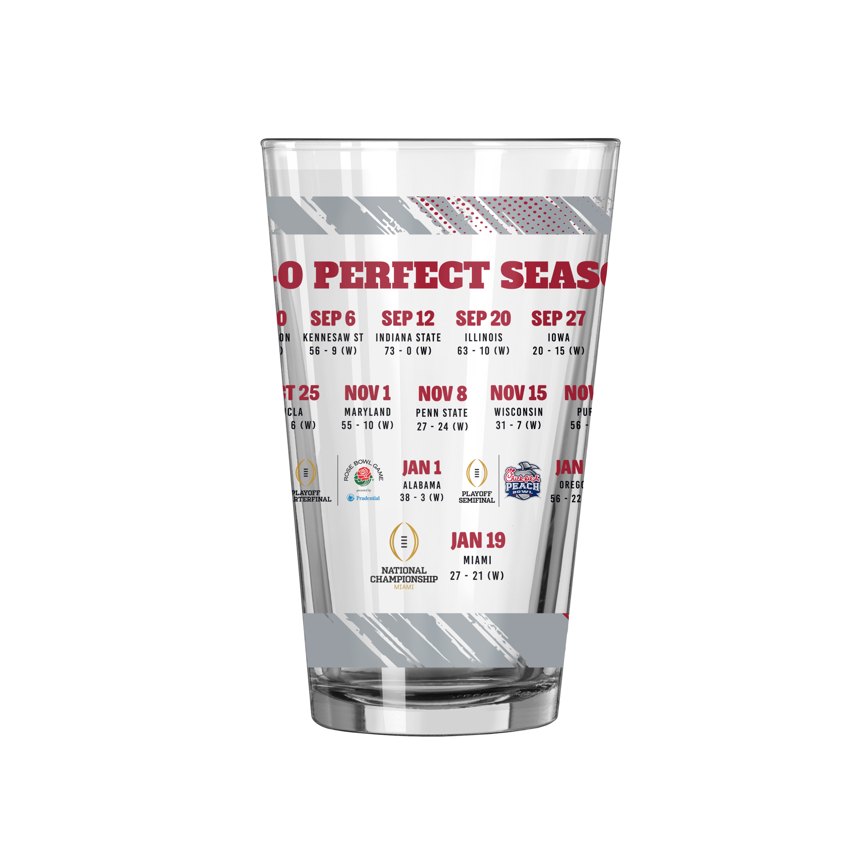 Indiana 2025 College Football Champions 16oz Schedule Pint Glass